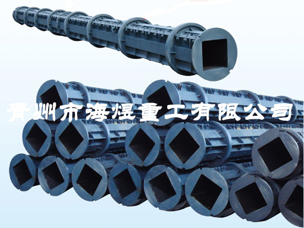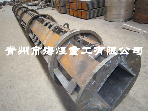 方桿模具是鋼板經(jīng)壓制而成,筒體上布有縱向和環(huán)形盤板,具有強(qiáng)度大,剛性好,經(jīng)久耐用等特點(diǎn)。鋼模采用分段加工,整體組裝,具有運(yùn)輸方便,組裝迅速,維修方便等優(yōu)點(diǎn),是制作方形預(yù)應(yīng)力鋼筋混凝土電桿的必備模具,亦可制作方形非預(yù)應(yīng)力鋼筋混凝土電桿。