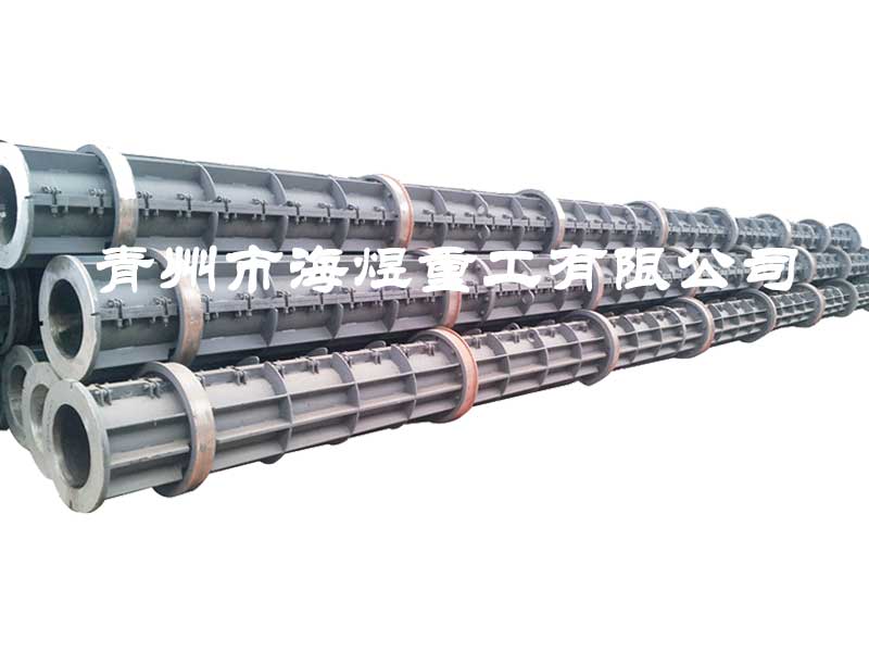 電桿模具為兩半式結(jié)構(gòu),生產(chǎn)時須先用壓型機把8mm厚的鋼板壓成符合電桿外形尺寸的要求,再借助法蘭、環(huán)筋、縱筋加固筒體,使模具能夠承受離心過程中各種作用力,最后把電線桿模具跑輪用車床整體通車,出廠檢驗,合格后即為電桿模具成品。