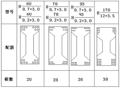 1.1 所用預應主筋應符合GB/T5223《預應力砼用鋼絲》。 1.2 在編組及張拉時應保證預應力鋼絲受力均勻。 1.3 主筋下料長度誤差不大于2.0mm,鐓頭直徑應在Ф7.0~Ф7.5之間,鐓頭高度為4.0~4.5mm。 1.4 各種型號支柱下料長度、根數(shù)、張拉值。