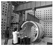 一、頂管概況及檢測(cè)項(xiàng)目 1. 概況 試驗(yàn)的水泥管為Ⅲ級(jí)管,產(chǎn)品型號(hào):DRCP2200*2500mm,內(nèi)徑2.2m,管壁厚220mm,長(zhǎng)度2.5m。配有雙層鋼筋骨架,縱筋為Φ10預(yù)應(yīng)力混凝土用鋼棒,fy=1420N/mm2,內(nèi)外兩側(cè)各24根,環(huán)向筋為Φ8HPB235級(jí)螺旋箍筋,fy=505N/mm2,ft=345N/mm2,鋼筋配置見圖1,排水管采用立式芯模水泥制管機(jī)振搗成型,制作工藝見圖2;炷敛捎谜羝B(yǎng)護(hù),試驗(yàn)時(shí)齡期為50d。 ![]() 圖1 排水管鋼筋籠 圖2 制作工藝 2. 檢測(cè)項(xiàng)目 2.1 外觀質(zhì)量及試件幾何尺寸 通過檢測(cè),管內(nèi)、外表面比較平整,無(wú)蜂窩、粘皮、露筋、麻面、塌落、空鼓、裂縫等現(xiàn)象。試件的內(nèi)徑、厚度及長(zhǎng)度的實(shí)測(cè)結(jié)果與規(guī)范值的偏差如表1所示。